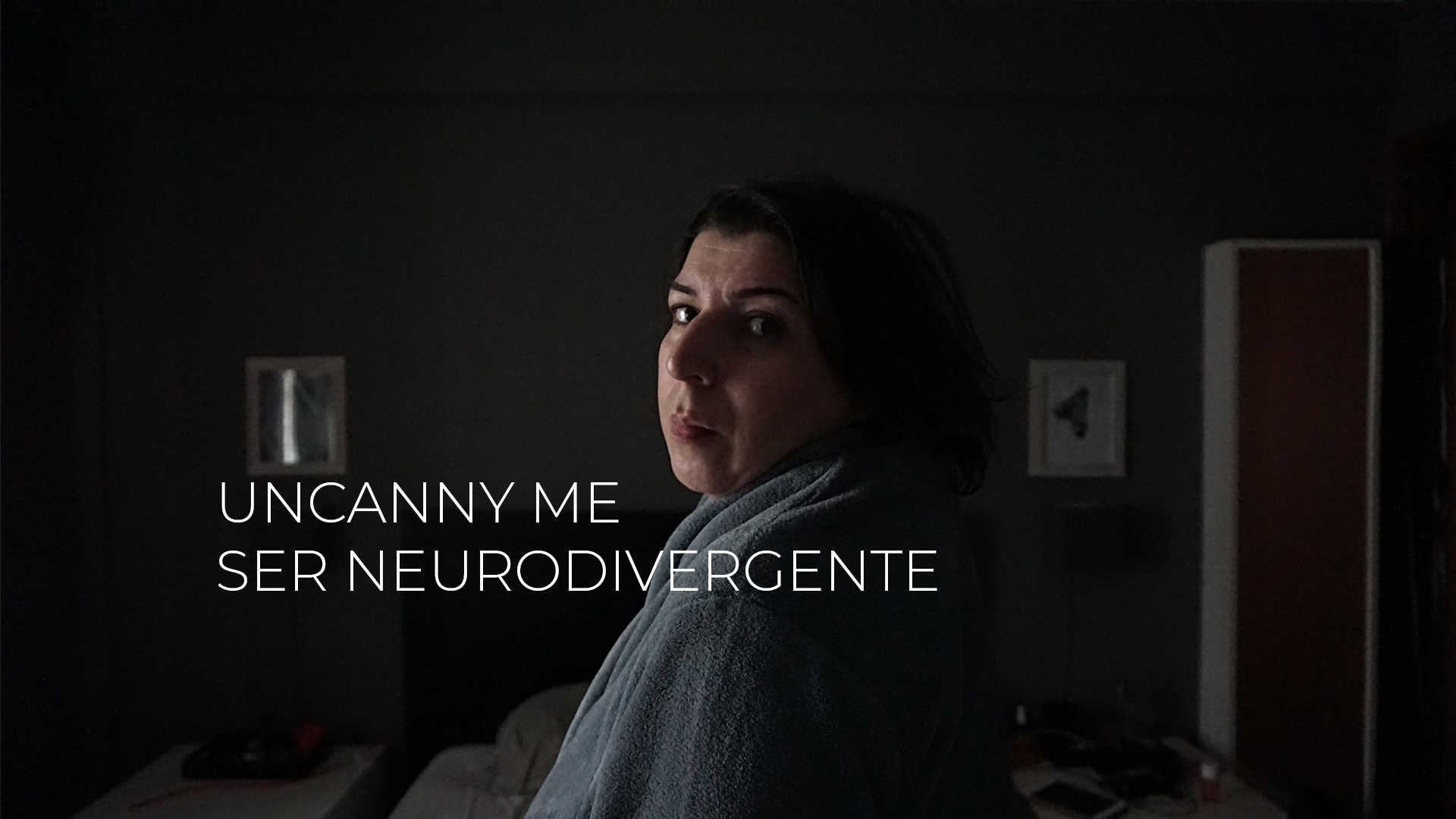 O visitante é acolhido no espaço expositivo com a projecção contínua do artefacto de videoarte “Uncanny Me – Ser Neurodivergente”, apresentado em loop, criando uma atmosfera emocionalmente densa. A repetição contínua da obra visa reforçar o carácter cíclico e muitas vezes incompreendido das experiências associadas à neurodivergência, nomeadamente ao transtorno bipolar.