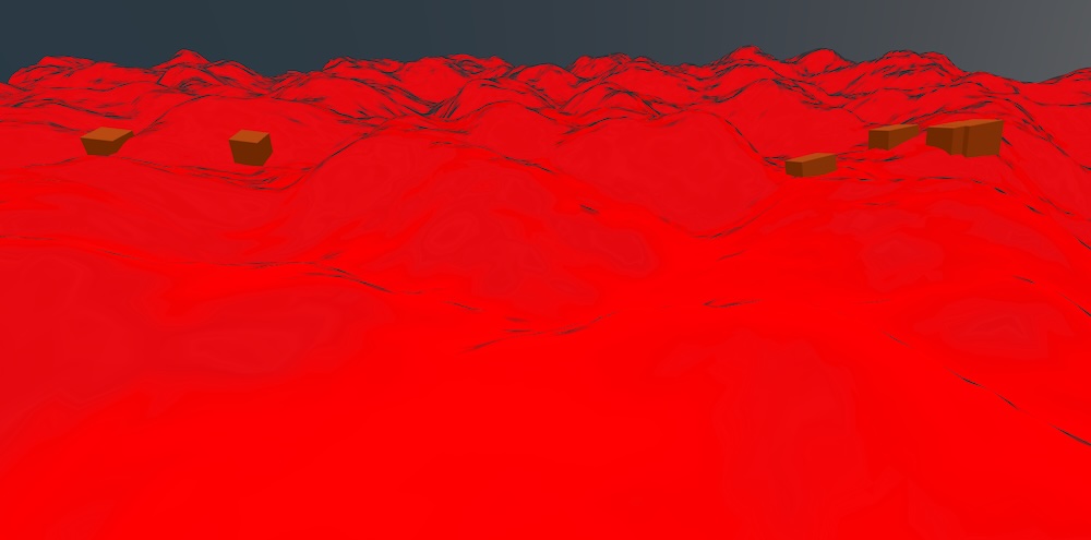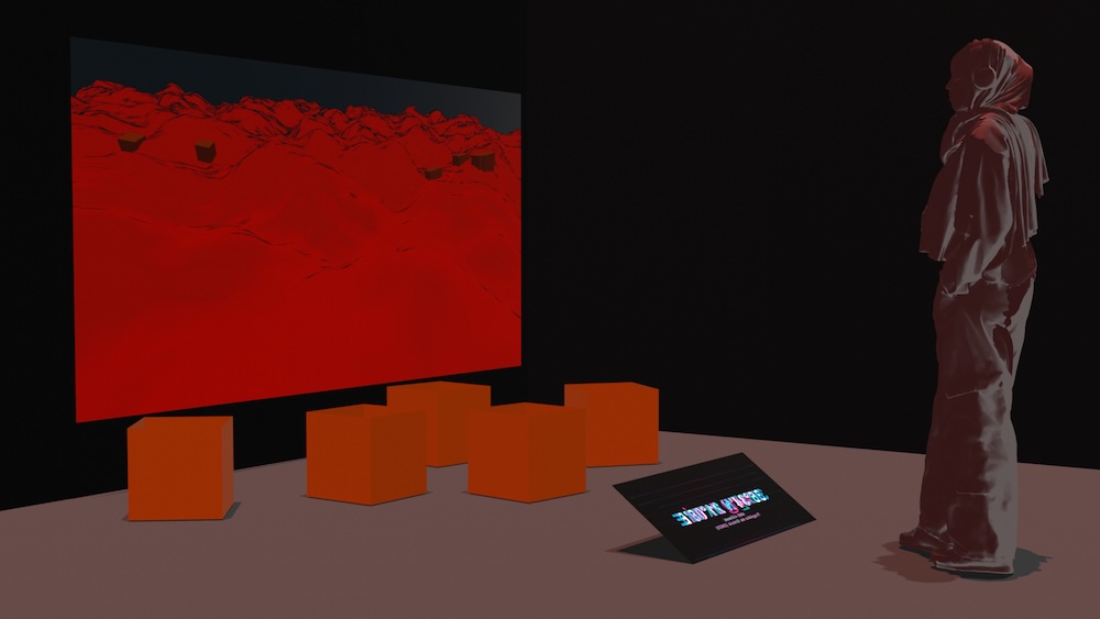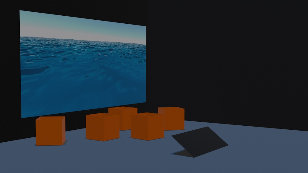 Inicialmente, a instalação apresenta-se como uma projeção calma e contemplativa: um mar azul com ondas suaves e um horizonte vasto, quase meditativo. Contudo, quando o visitante entra no espaço e é detetado pela webcam, dá-se uma transformação imediata e abrupta: o mar torna-se vermelho, e revoltado, o céu enche-se de nuvens pesadas cinzentas. É nesta altura que surgem cubos laranja a boiar, volumes que evocam coletes salva-vidas assinalando cada vida e os poucos pertences que a acompanham.